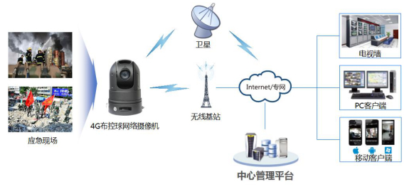 2.本系统设计是基于4G无线传输的视频监控系统,将4G高清夜视布控球网络摄像机安装到应急车或在突发现场用三角支架进行架设,将突发现场的图像进行压缩、编码传输到后端指挥中心的监控平台上面,方便后方领导的观看与指挥调度工作。